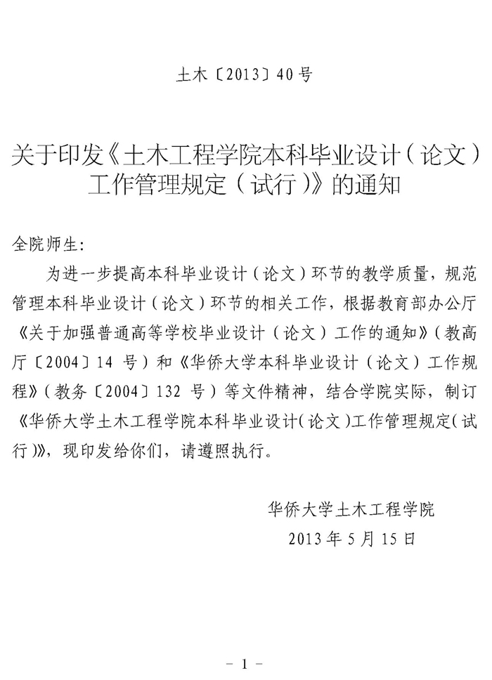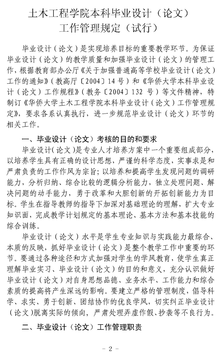 关于印发《土木工程学院本科毕业设计(论文)工作管理规定(试行)》的通知