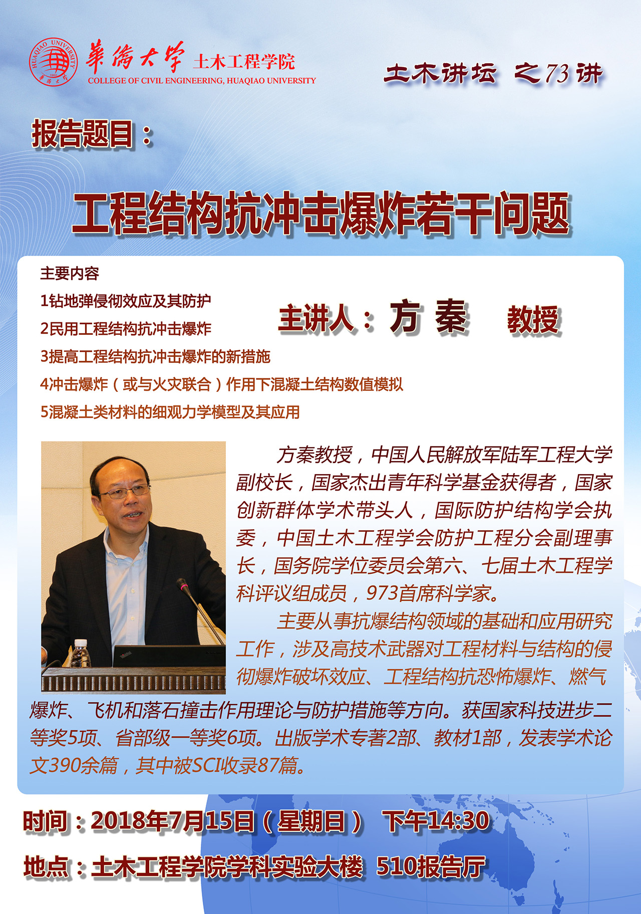 土木讲坛之73讲:中国人民解放军陆军工程大学方秦教授