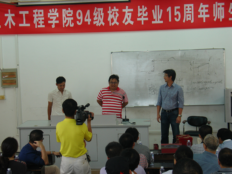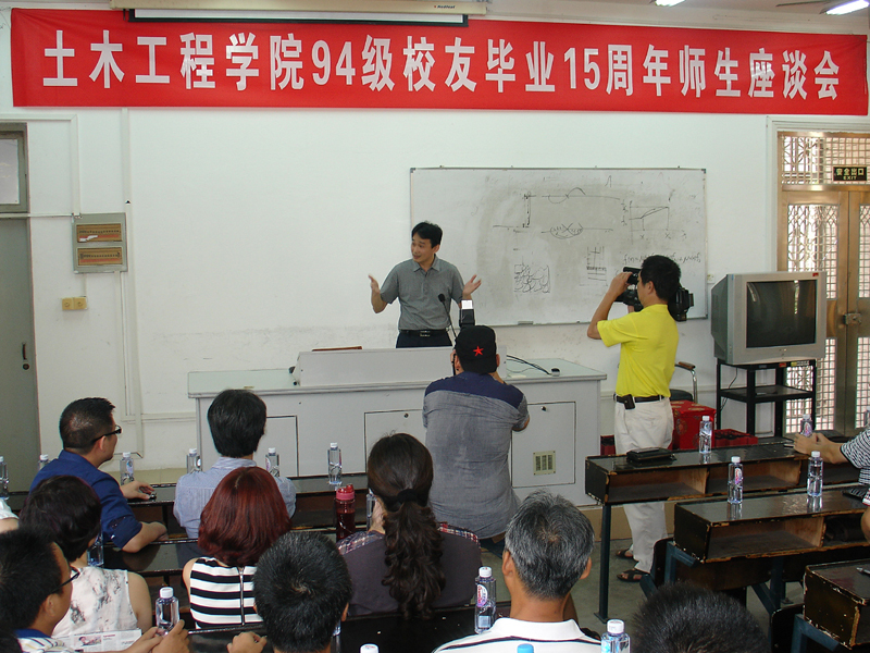 在土木楼二楼梯形多媒体教室,校友与老师们欢聚一堂,畅叙幽怀。土木工程学院院长郭子雄、党委书记陈捷以及昔日恩师曾志兴、姚培生、刘祖文、吕振利、黄奕辉、方德平、林锦贵等与返校的40多名校友共叙离情别意,畅谈人生感受。