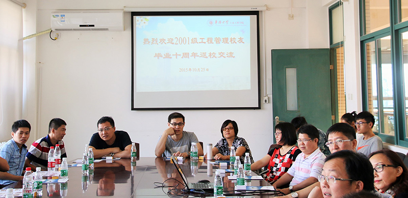 25日上午,在厦门校区土木工程学院C5-406会议室举行的2001级工程管理毕业十周年师生座谈会,陈捷、秦旋分别向校友们介绍土木工程学院的发展概况。陈捷发言时呼吁校友们为学院就业工作出谋划策,贡献力量。基建处副处长詹朝曦、华大设计院副院长孙永青、土木工程学院叶青、张泳、毛茂松等以及班任任张惠华参加校友座谈。
